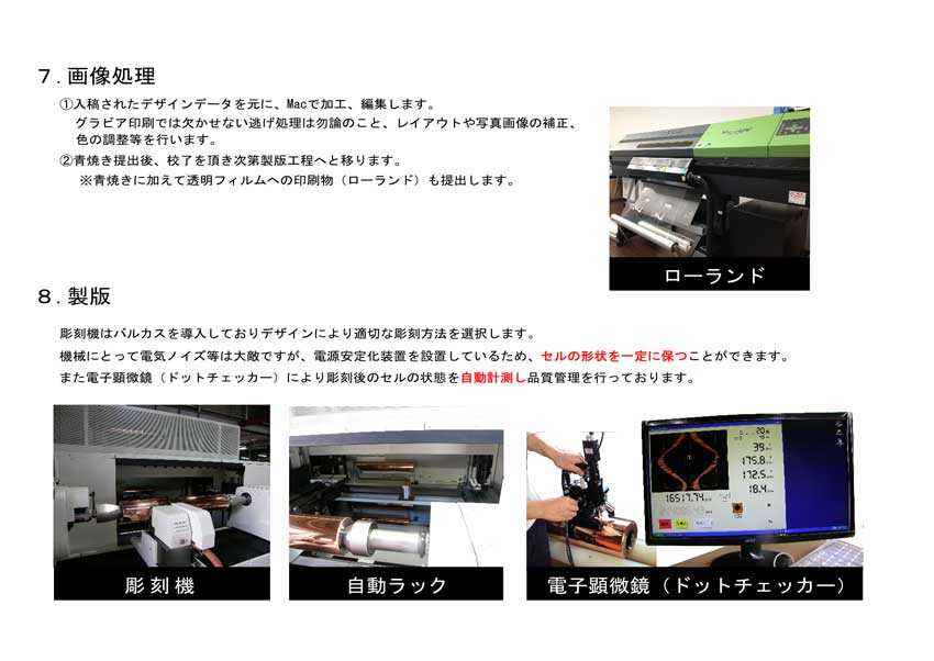 弊社では、お客様から頂いたデータを元に、精密な検査をして、丁寧に版を仕上げております。